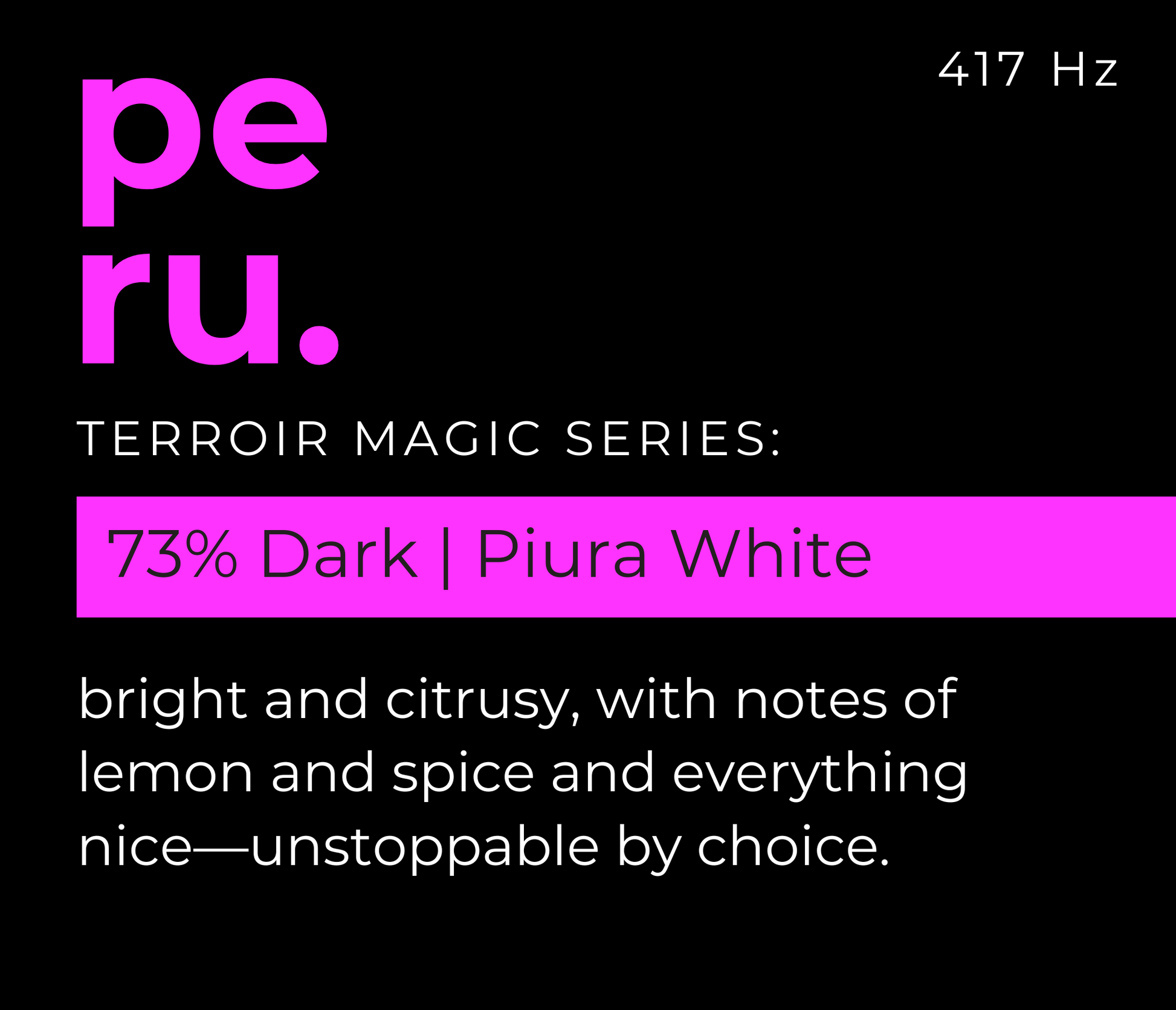 Grown for over 1,000 years in Peru’s Sechura desert, this cacao has adapted so completely to its arid home that it can never return to the jungle. Rich in complexity, with 30% rare white beans, it thrives unapologetically against the odds. Infused with 417 Hz, the frequency of transformation and resilience, this chocolate dares to evolve—just like you.