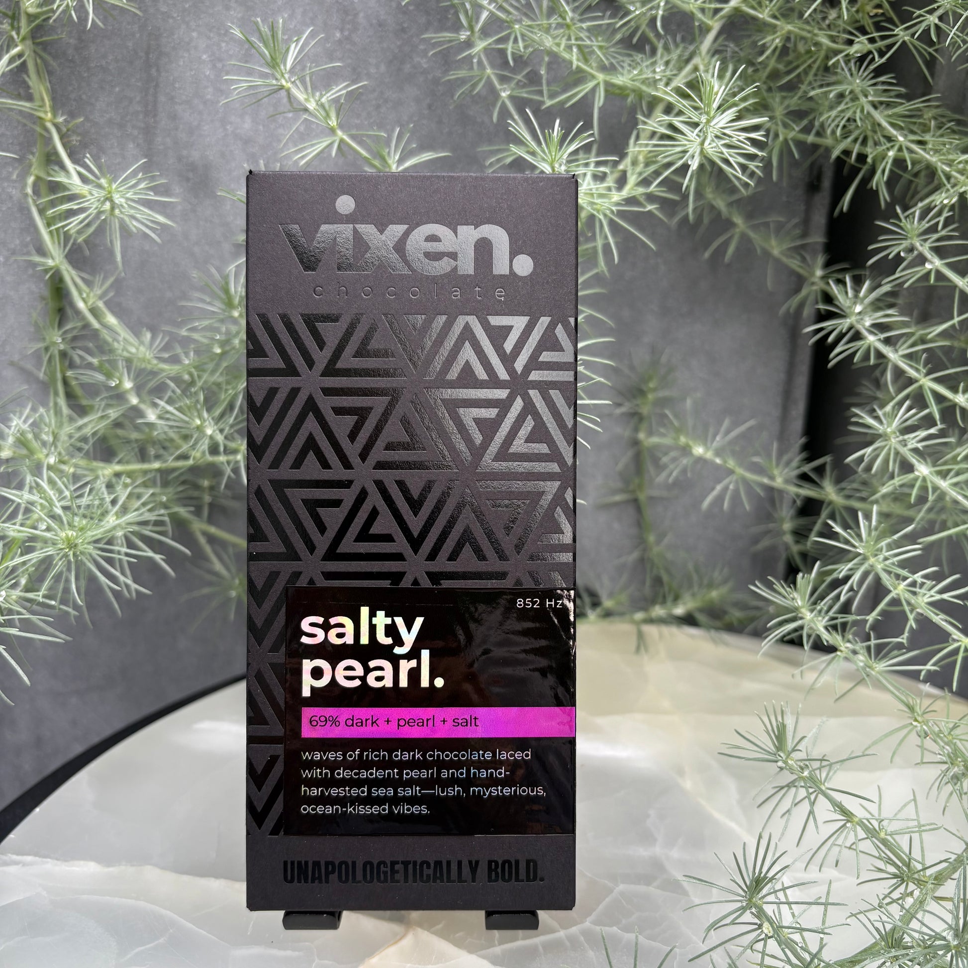 BAR VIBE: waves of rich dark chocolate laced with decadent pearl and hand-harvested sea salt—lush, mysterious, ocean-kissed vibes.
